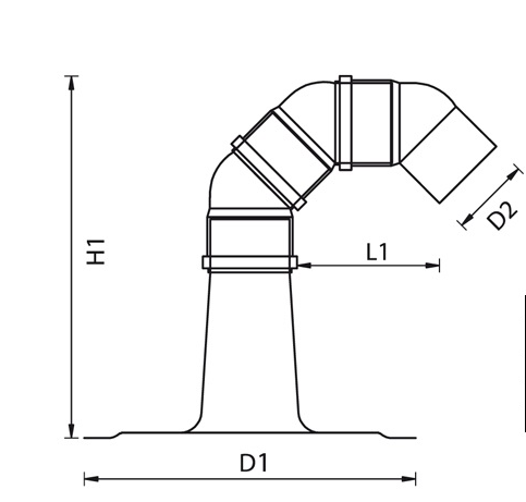 Kabeldoorvoer bestaande uit een aluminiumplakplaat en kunststof 45 graden bochten voor het doorvoeren van uw kabels door het dak. Met een diameter van 110 mm. Uiterst geschikt voor Airco toepassingen.