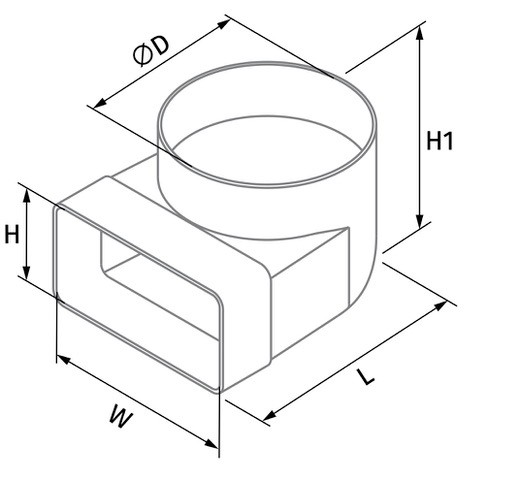 Kunststof lepelhoek voor kanaal 220 x 90mm naar Ø 125mm