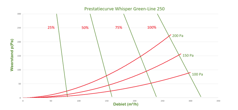 - Capaciteit: 250 m3/h (bij 200Pa)